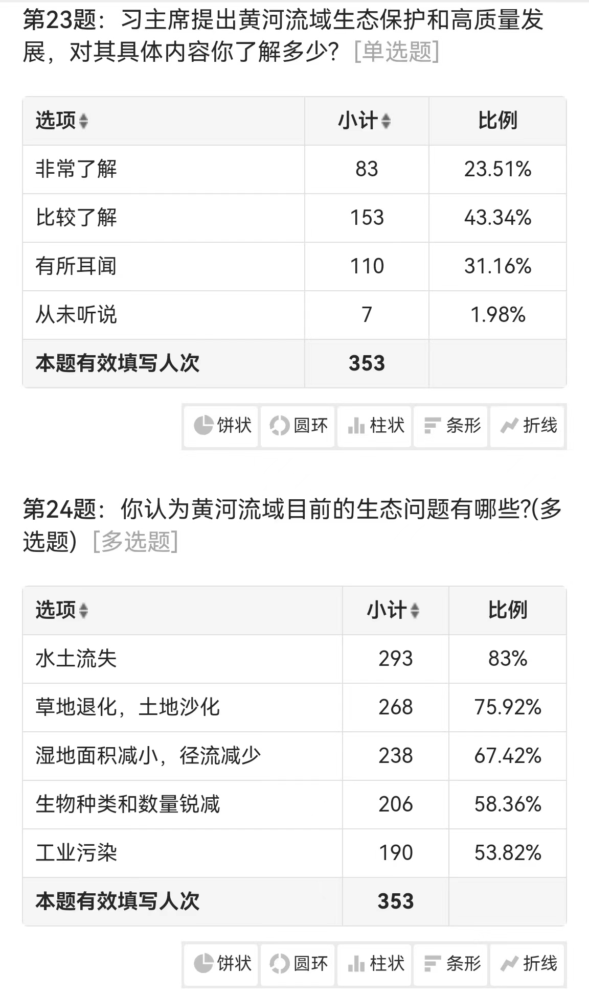 黄河,伟大的母亲河,以其浩荡磅礴的气势,孕育了华夏文明的无尽辉煌。黄河安澜是中华儿女的千年期盼,保护黄河事关中华民族永续发展。本次题目共三十题,通过对结果的分析发现,无论是研究生还是博士生对于黄河流域文化的了解都是极其有限的,因此学院会继续开展有关黄河流域文化的宣讲内容,使同学们加强对黄河生态文化知识的建设,研究生会也会继续为宣讲团服务,为同学们服务。尽最大的努力保卫黄河,保护黄河丰富的生态系统和生物多样性。(通讯员:程丽)