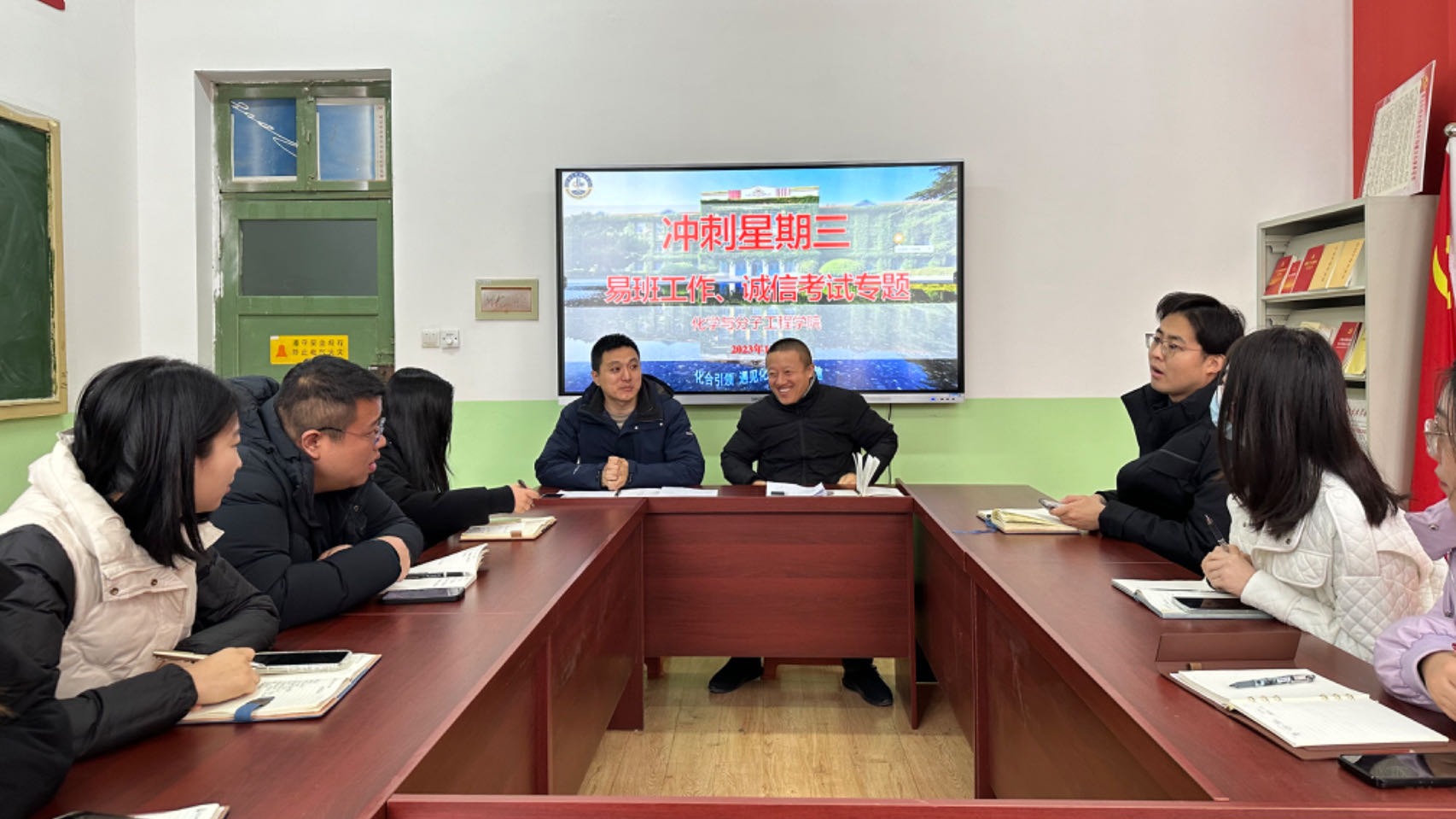 12月20日,学院开展“冲刺星期三”活动,本次活动围绕易班建设和诚信考试主题,学院党委副书记杨小明、全体辅导员参加会议。