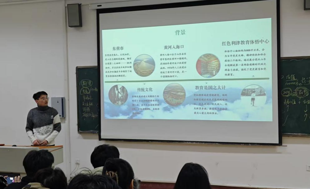 王英立详细介绍“化育山海 情系炎黄”实践活动的背景以及黄河文化。他表示,在此次社会实践活动中,团队成员走进企业,与企业高层进行深入交流;进行“化育山海大课堂”的宣讲,将化学知识融入日常学习教育中,激发孩子们学习化学的兴趣;参观红色利津教育体悟中心,学习红色文化,理解和感悟红色精神的内涵。于程程从实践背景、精神以及个人收获三个方面与大家分享“走进鲁南制药”的实践感悟。姜文娟从前期准备、活动开展以及活动后期三部分对如何完整策划好实践活动做出介绍。最后,程丽老师对本次活动进行总结并提出展望。