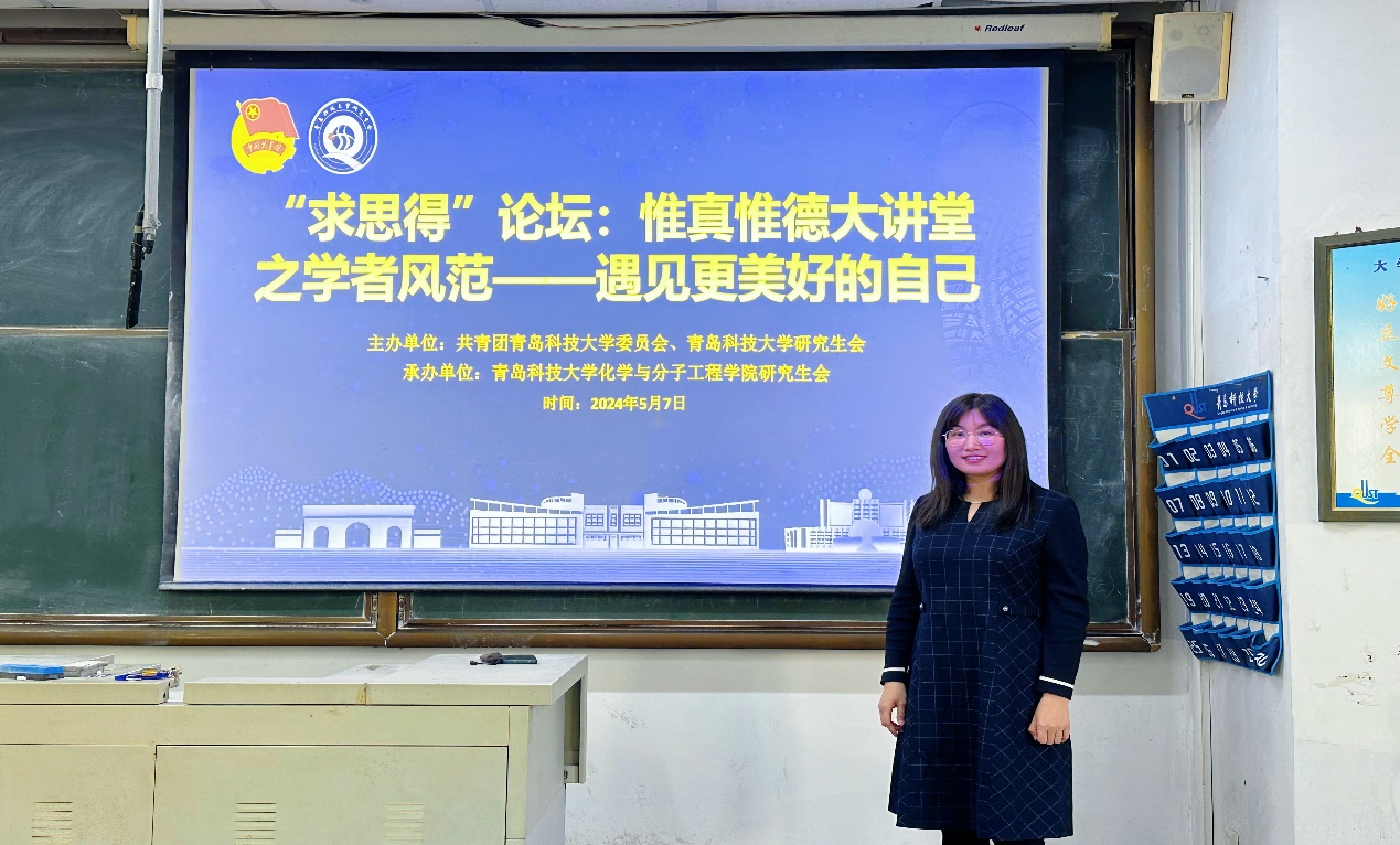 为加强研究生创新能力培养,拓宽学术视野,激发研究生创作灵感,培养科研兴趣,提高研究生的科研能力和培养质量,构建研究生科研成果学术交流平台。2024年5月7号下午16:30,化学院研究生会于一教203开展“求思德”论坛:惟真惟德大讲堂之学者风范——遇见更美好的自己。本次论坛邀请到yl23455永利集团博士生导师,山东省“泰山学者”青年专家林健健教授主讲。辅导员程丽老师出席此次活动并致辞,化学院研究生和本科生同学参加本次论坛,刘凯昱任主持人。