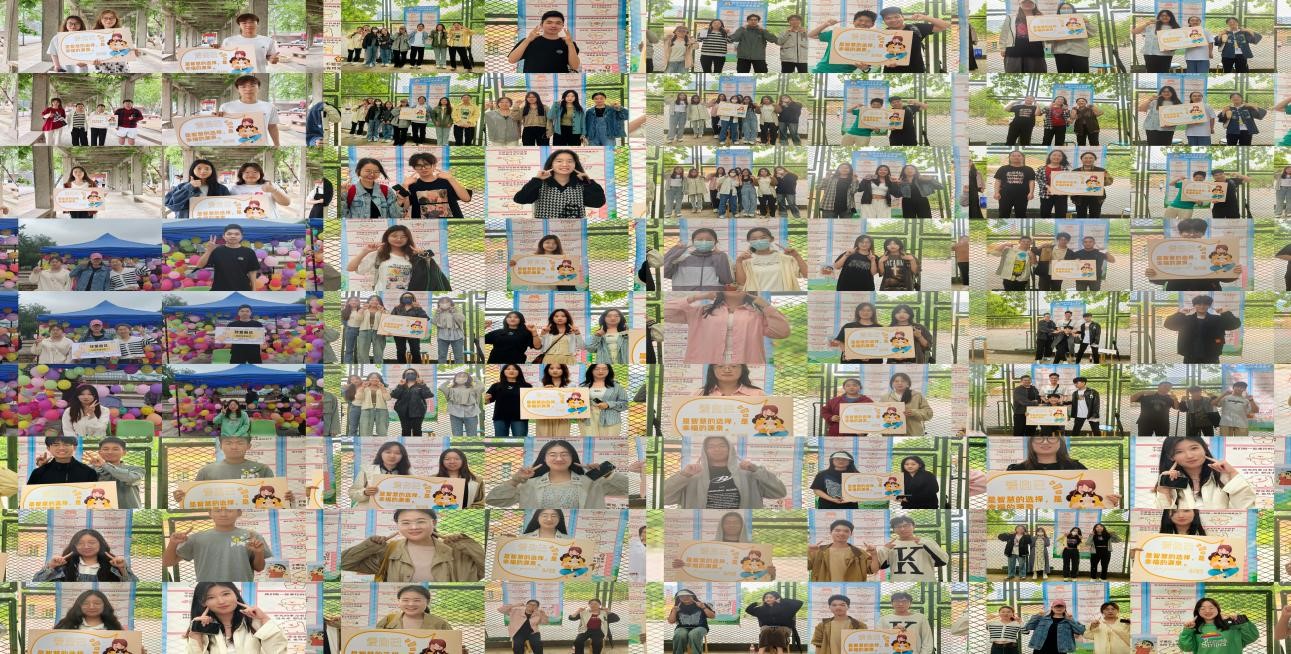 此次活动共在四方校区设五个微笑打卡点,每个打卡点都有与情绪相关的照片,参与者需要模仿照片中的动作和表情,并由志愿者拍摄照片。同时,参与者还需要使用"我爱我"主题KT板拍摄照片,留住微信,完成微笑打卡。两项均打卡完毕,视为一个打卡任务完成。完成上述两个要求后每个打卡点的志愿者都会在参与者的贴纸集卡上贴上一个贴纸。活动得到了参与同学的热情参与,每个打卡点现场氛围热烈。