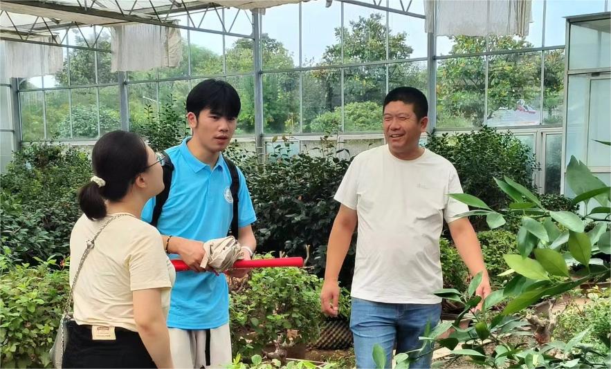 院上村书记向实践团介绍道:“院上村始终坚持党建引领,推进茶花卉苗木等规模化、品牌化,扶持休闲观光旅游的家庭农场、专业合作社,形成‘公司+专业合作组织+农户’的现代农业经营模式,让花木越开越旺,让村庄越来越美。”