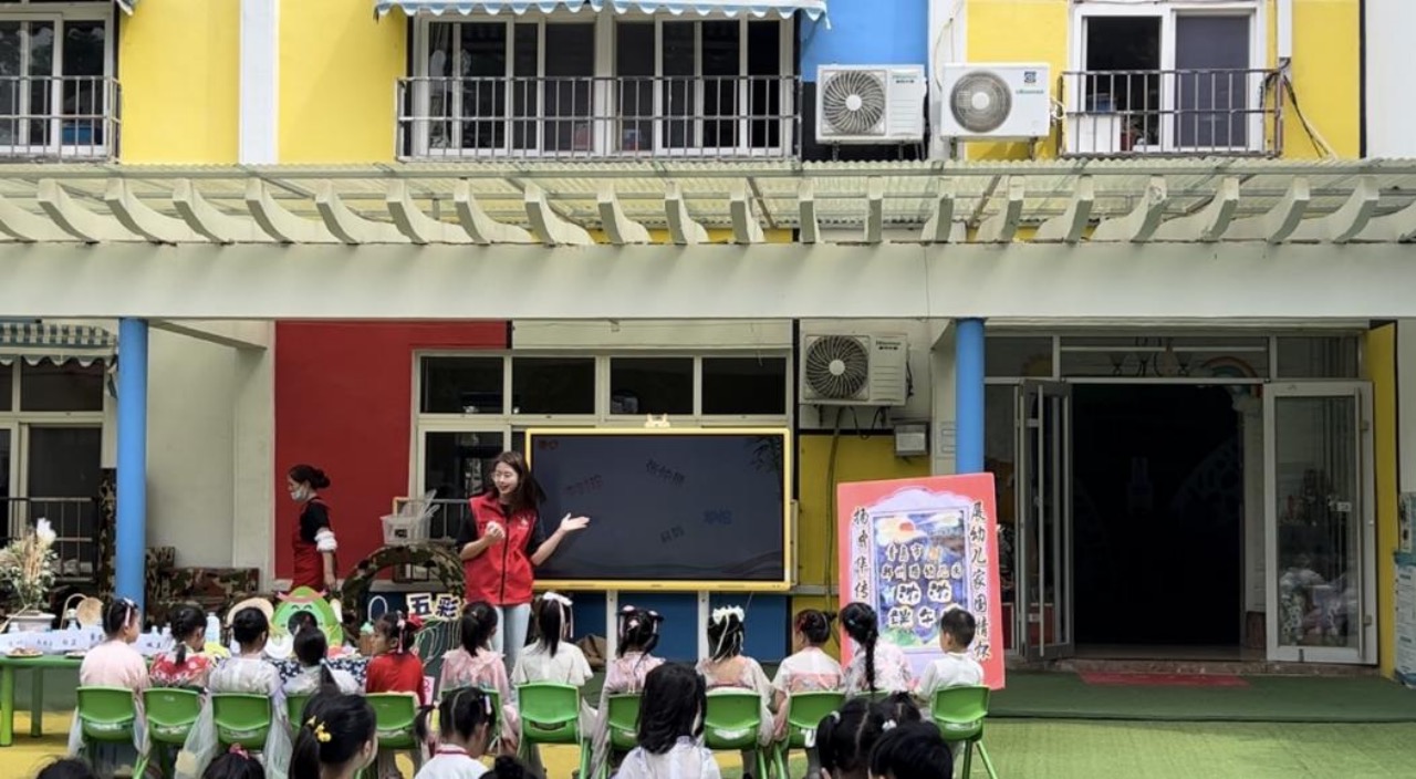 此外宣讲团还曾与郑州路幼儿园携手,以端午节和中医药相结合的形式,展开“化育山海大课堂——童心计划”线下实践教学。和小朋友们一起包粽子、编织五彩绳、做漆扇、画粽图等。在一片欢声笑语中,和孩子们一起体验了中华民族的传统文化。
