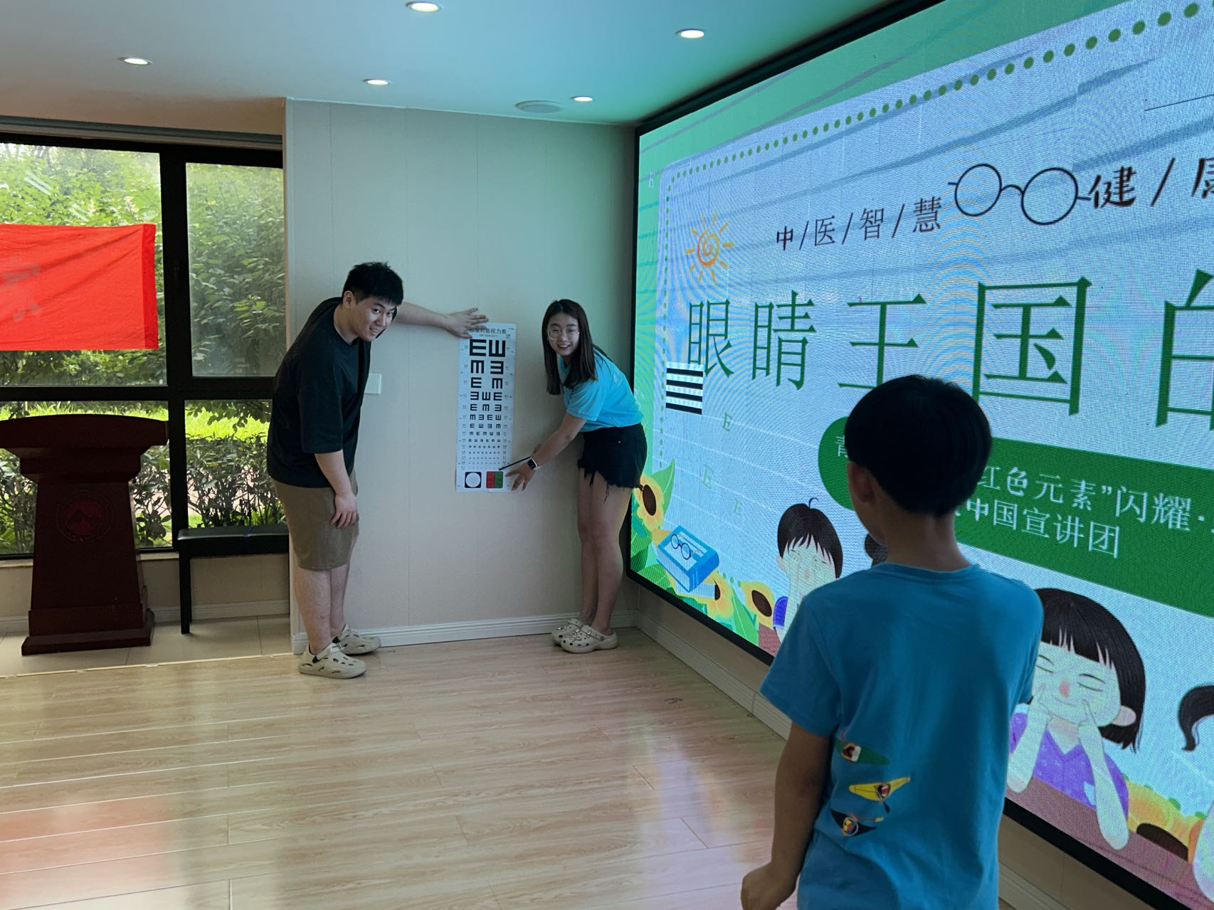 同时团队成员在双山幼儿园开展中医药护眼,首先挑选两位小朋友参与测视力互动,然后小侦探上线—寻找近视的原因,讲解并展示护眼的中草药,最后教小朋友们一起做眼保健操,将中医药和小朋友们的生活联系起来。让孩子们从小了解和尊重传统文化。这样的活动有助于培养孩子们的健康意识,也有利于传播中医药知识。
