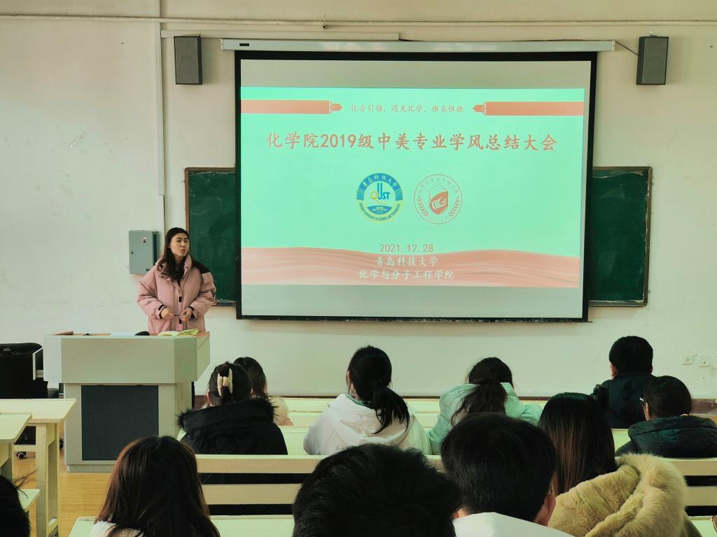 为进一步加强中美专业学风建设,提高学生假期安全意识,12 月 28日上午,化学院2019级中美专业在一政召开2021年度中美专业学风总结大会,2019级辅导员刘施施、高源以及全体中美专业学生参会。本次大会主要从学习计划、安全教育、疫情防控三个方面展开。