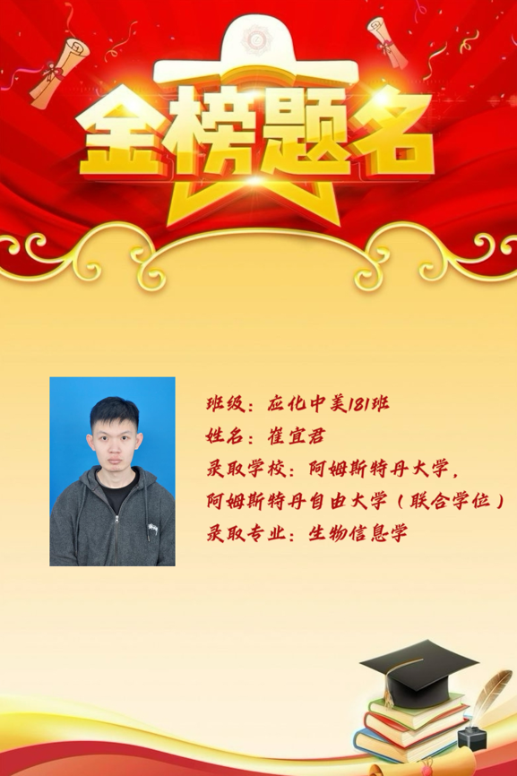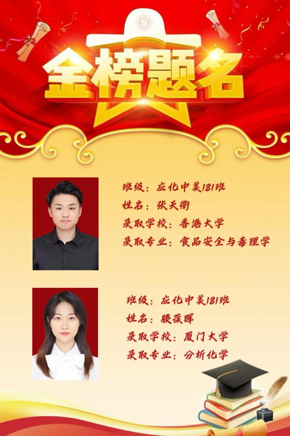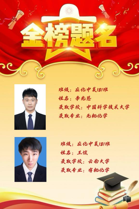星光不问赶路人,时光不负有心人。考研是一场逆流而上的旅行,也是一次孤独的朝圣,应化中美181、182班的考研同学们用他们四年的奋斗,最终不负韶华,给自己交上了一份满意的“研”途佳卷。