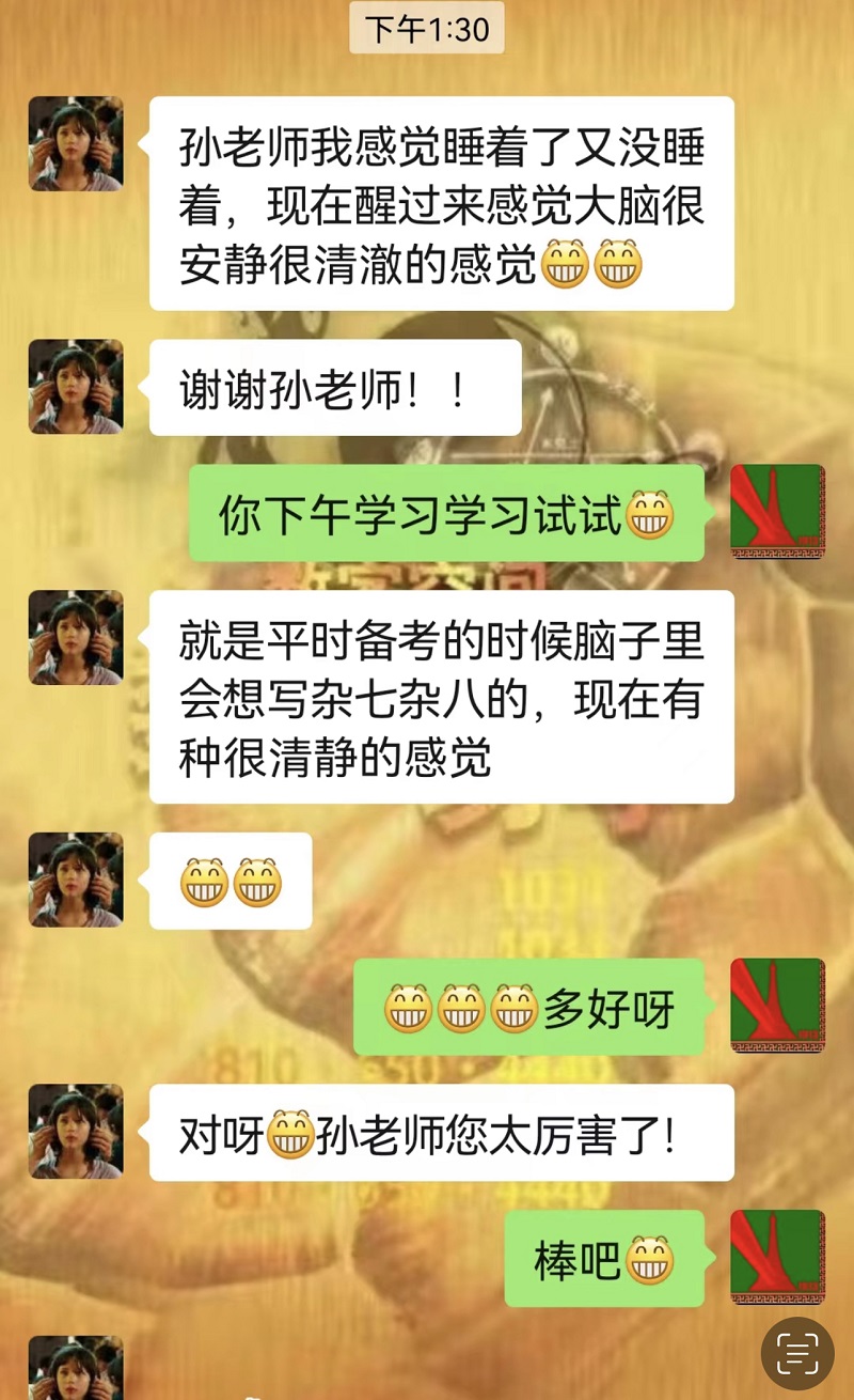 本期团辅以学生自愿报名的形式,通过腾讯会议开展,中美教研室教师王新星、学院学工办主任刘施施和近20位应化中美班学生参加。在团辅中,孙雪梅老师通过团体催眠的方式,引导同学们完全放松,将注意力关注在自己的感觉上,逐渐疏解身心压力,自我赋能。团辅后,部分同学反映:做完辅导训练,自己心情平静,大脑活跃,思路清晰,极大地减少了自己的考研焦虑、提高了学习效率。