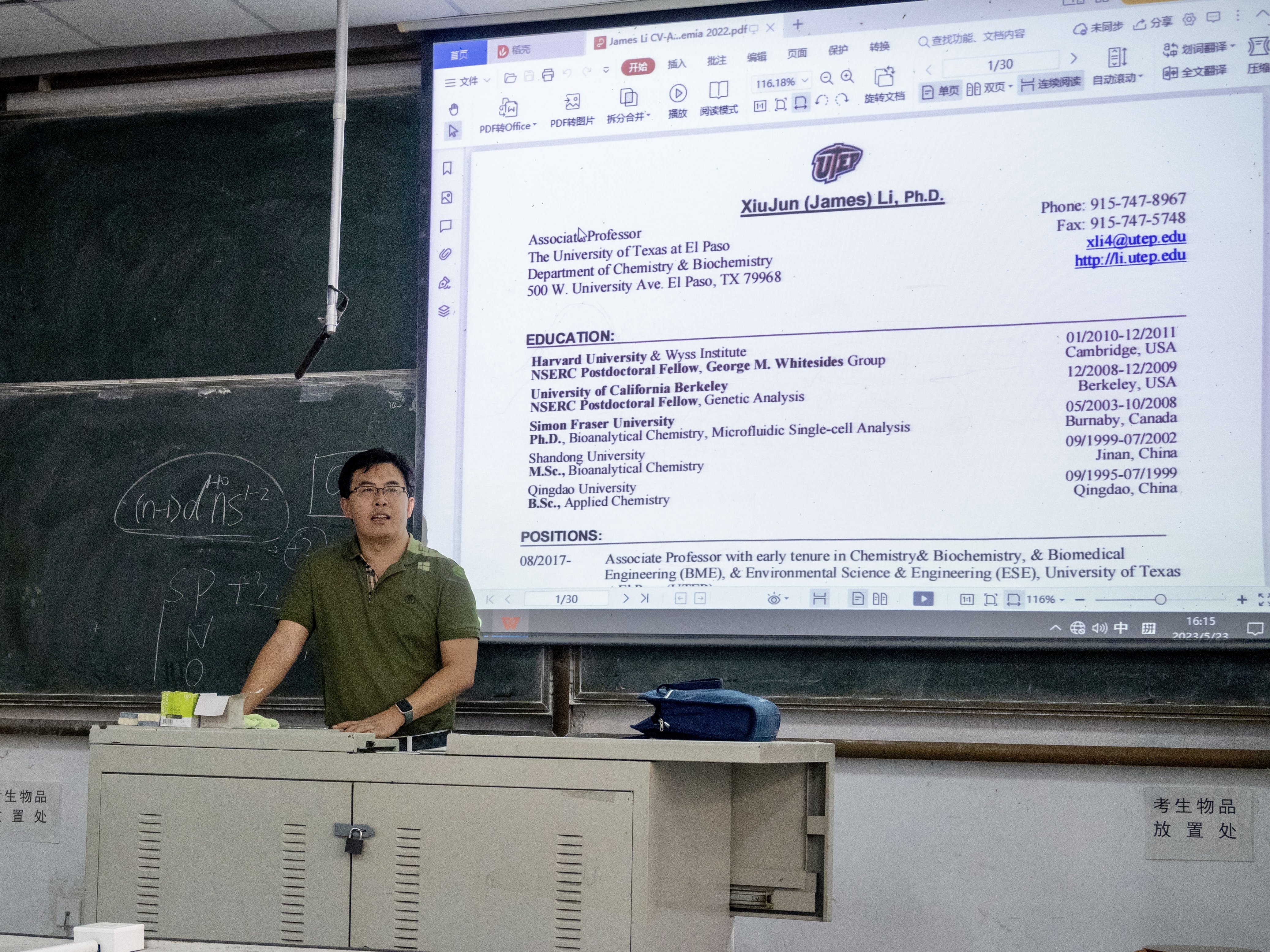 5月23日,化学院在一号教学楼101教室举行“求思得”论坛暨留学经验交流会。化学院中美专业任课教师、美国德州大学李秀军教授和全体中美专业本科生参加会议,会议由中美教研室主任刘康主持。